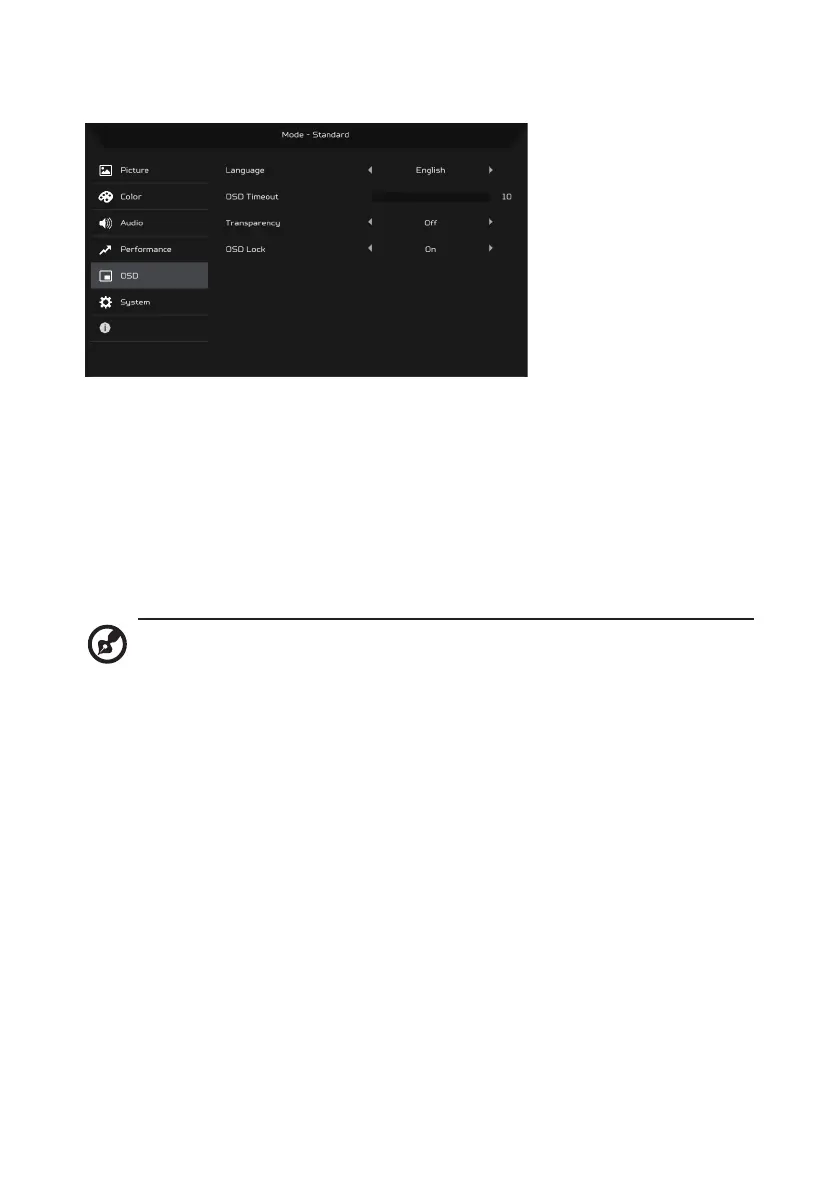 4. OSD Lock (OSD vergrendelen): De OSD-vergrendelfunctie wordt