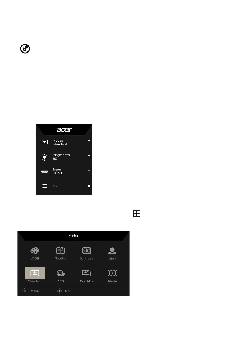 De standaardfunctie voor de knoppen 1 en 2 zijn Modi en Helderheid. Met de