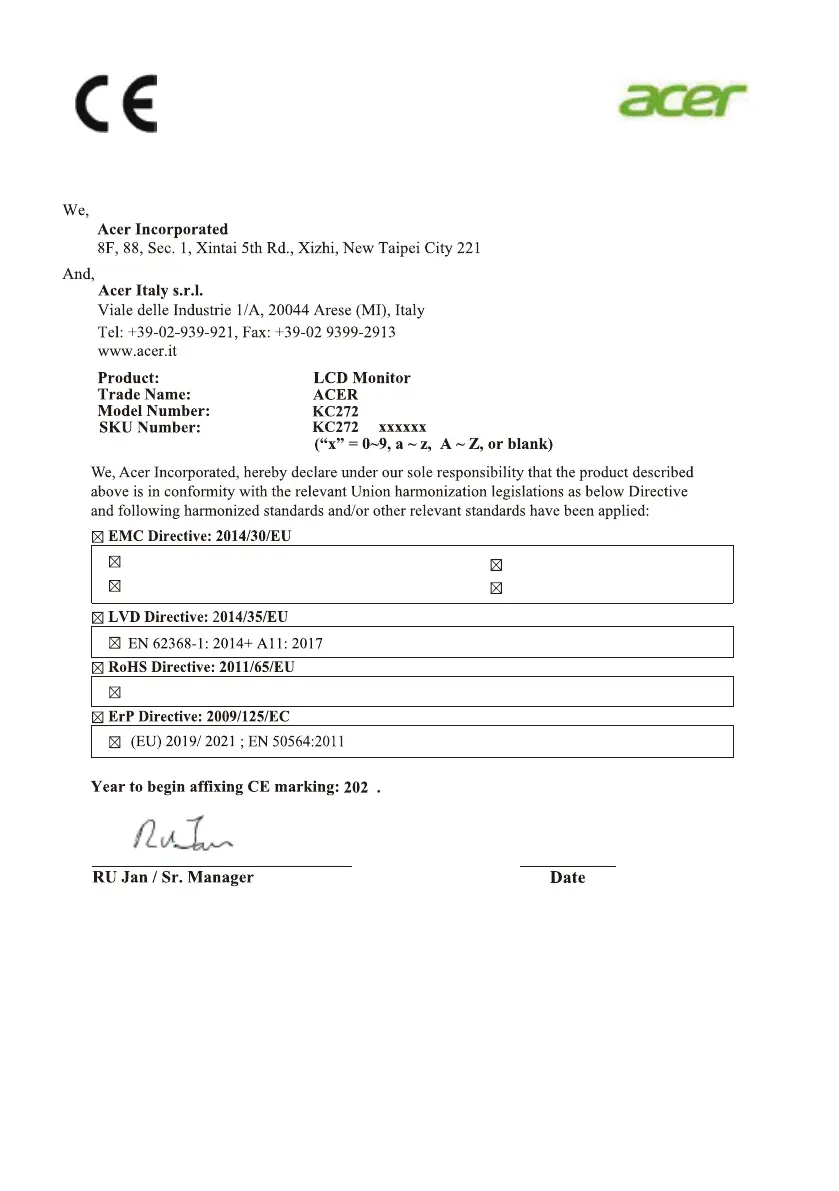 Name of Responsible Party: Acer America Corporation