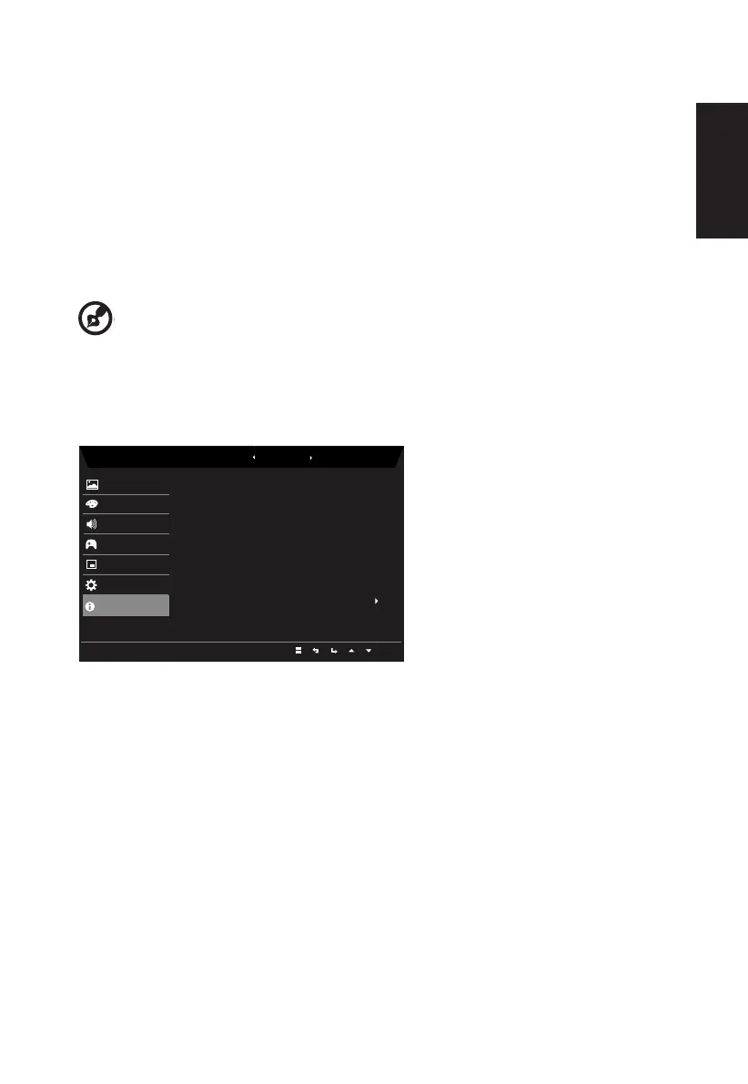 2. Using the ▲/▼ keys, select Information to view the basic information for your monitor