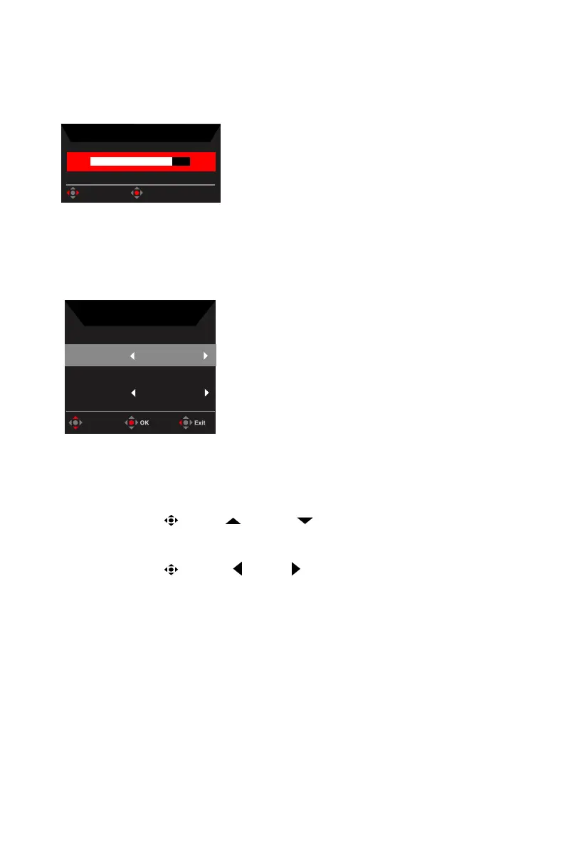 de OSD. Druk vervolgens naar rechts om naar het element te navigeren dat u wilt