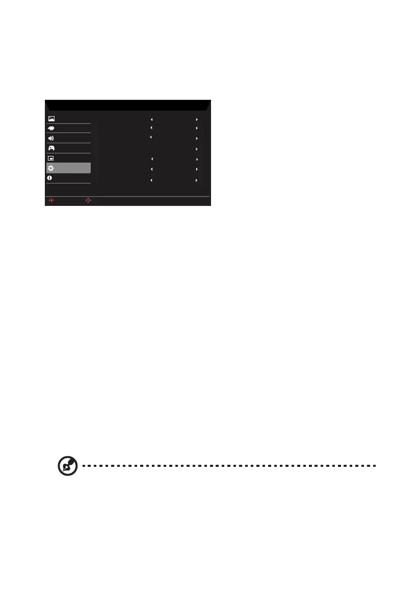 2. Druk de joystick omhoog of omlaag om System (Systeem) te selecteren op de OSD.