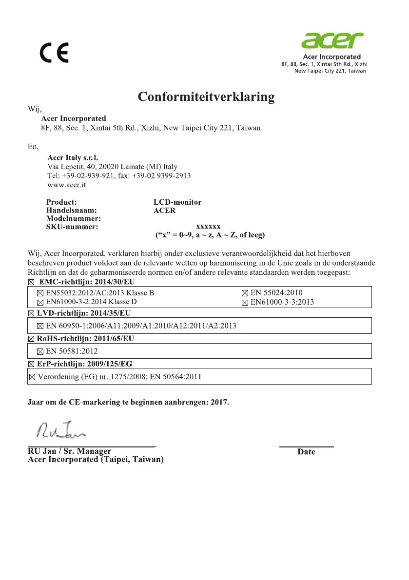 Bekijk gratis de handleiding van Acer KG241YU, stel vragen en lees de antwoorden op veelvoorkomende problemen, of gebruik onze assistent om sneller informatie in de handleiding te vinden of uitleg te krijgen over specifieke functies.