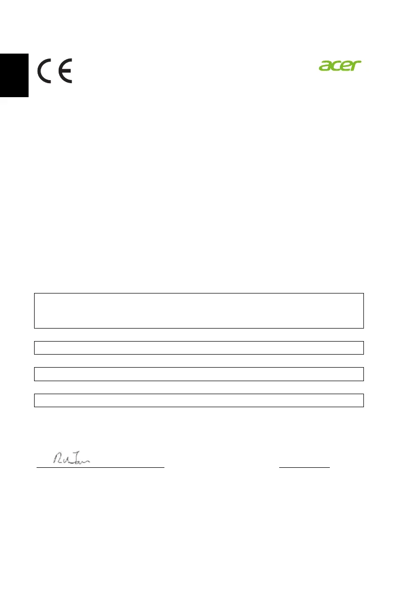 We, Acer Incorporated, hereby declare under our sole responsibility that the product