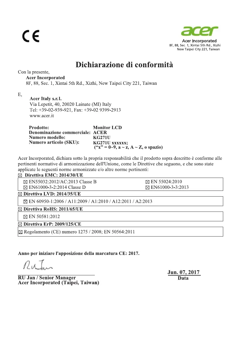 Bekijk gratis de handleiding van Acer KG271U, stel vragen en lees de antwoorden op veelvoorkomende problemen, of gebruik onze assistent om sneller informatie in de handleiding te vinden of uitleg te krijgen over specifieke functies.