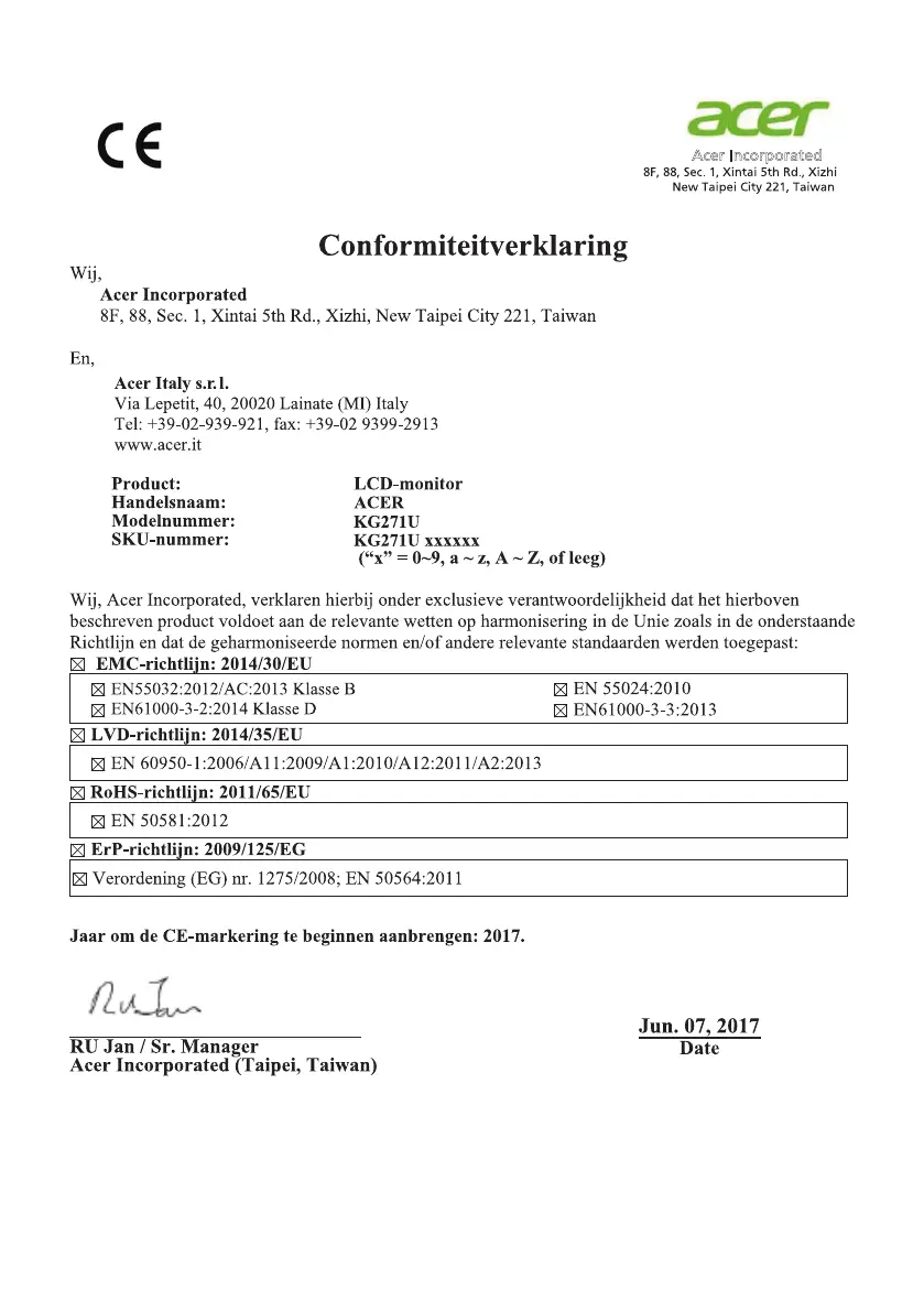 Bekijk gratis de handleiding van Acer KG271U, stel vragen en lees de antwoorden op veelvoorkomende problemen, of gebruik onze assistent om sneller informatie in de handleiding te vinden of uitleg te krijgen over specifieke functies.