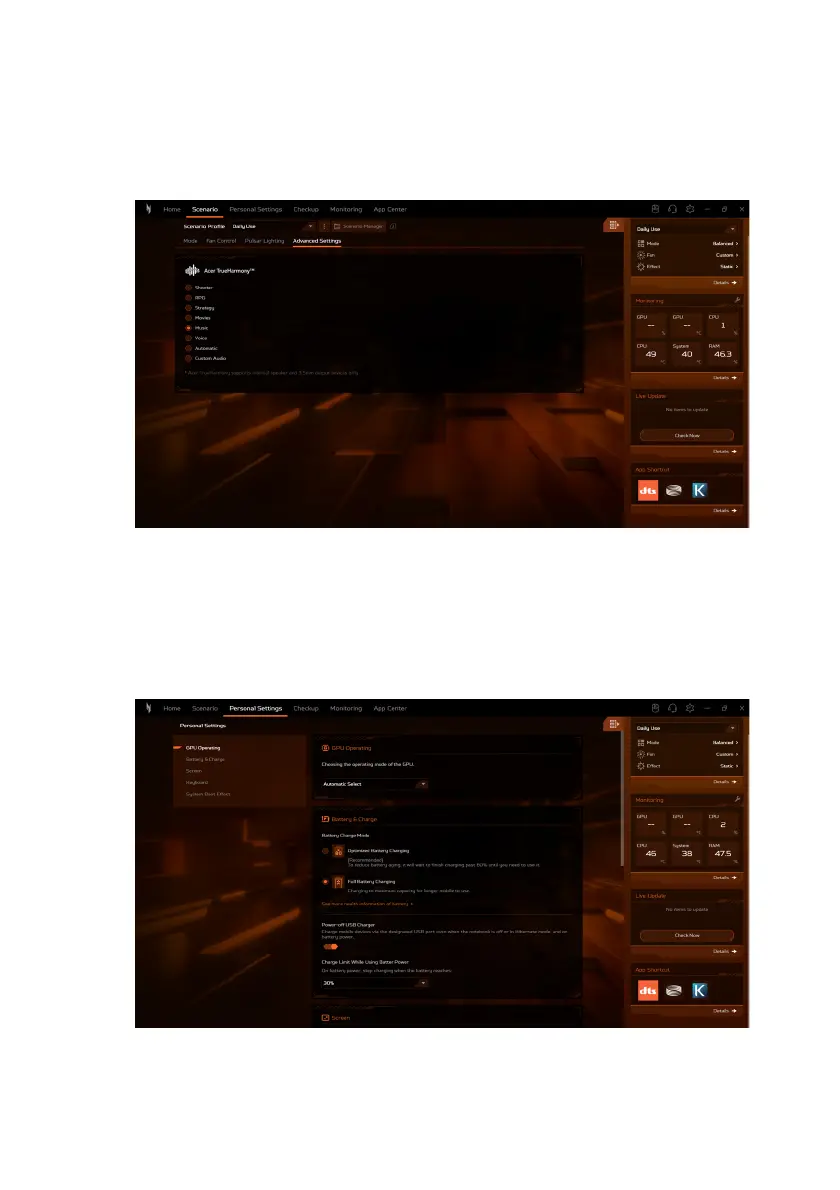 In the Personal Settings screen, you can configure the GPU