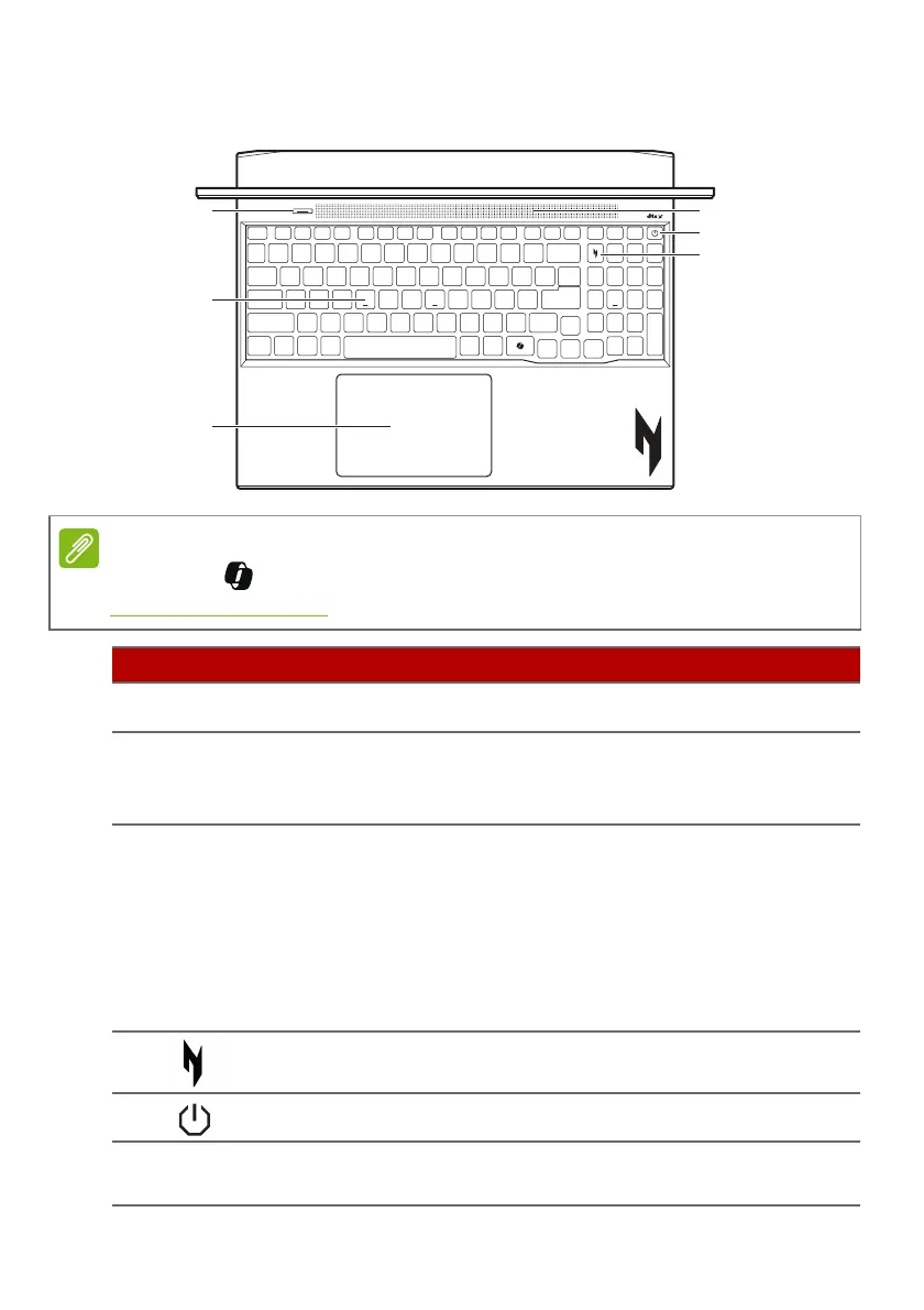 Power button Turns the computer on and off.