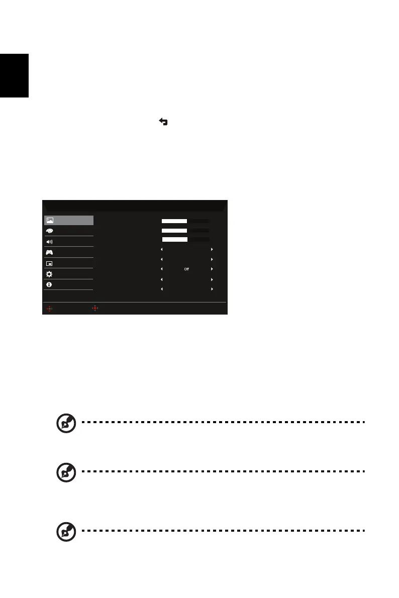 2. Selecteer met de -knop Beeld in de OSD. Navigeer vervolgens naar de instelling