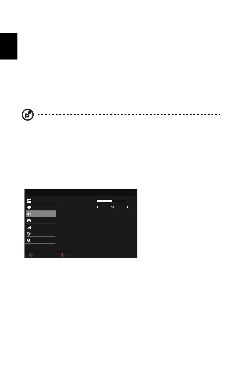 2. Selecteer met de -knop Audio in de OSD. Navigeer vervolgens naar de instelling