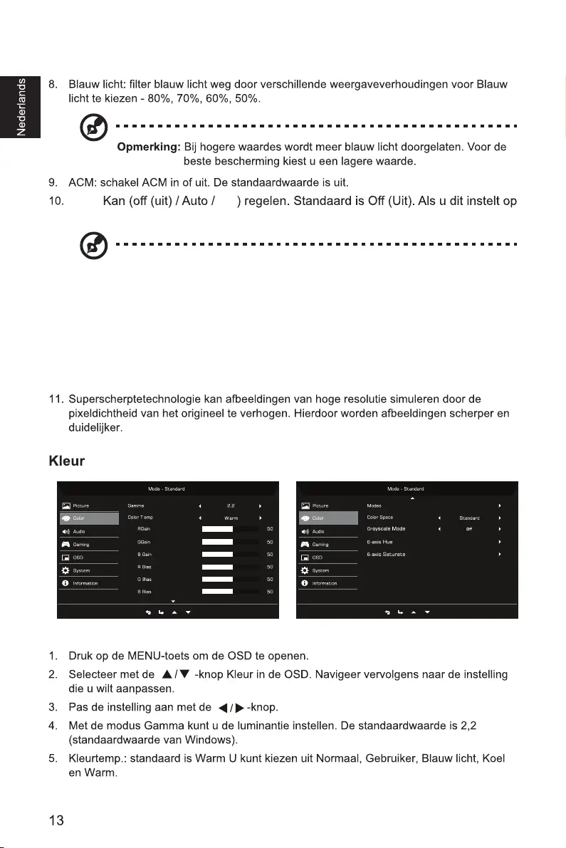 2. Wanneer HDR = Auto, sommige parameters: (ACM, Gamma, Contrast, Blue Light