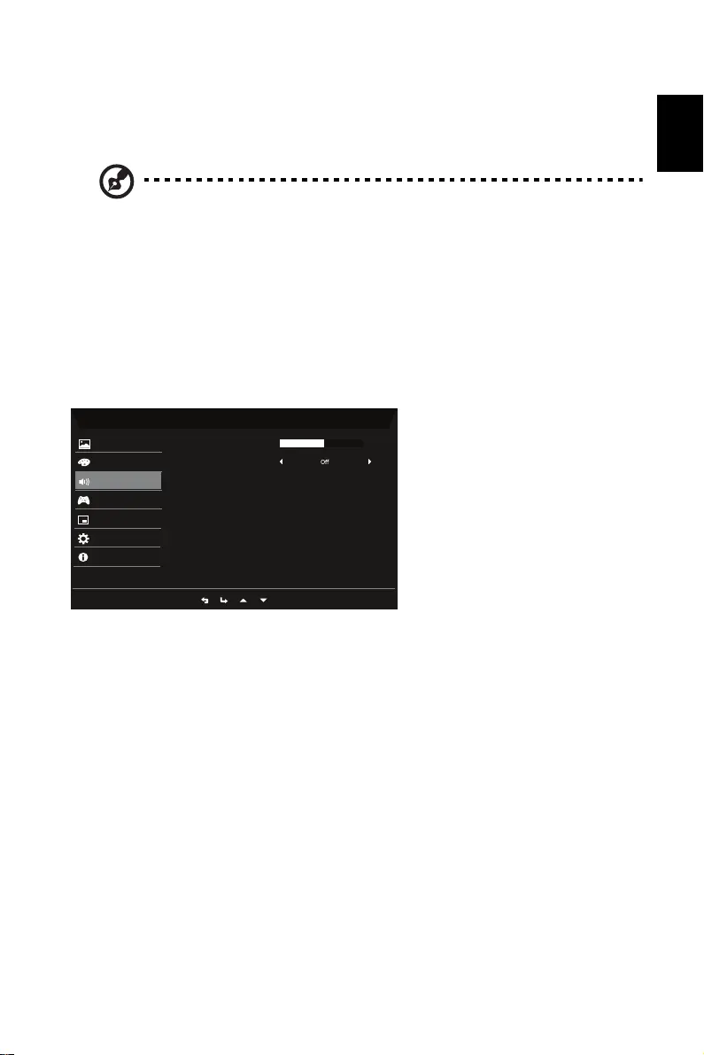 2. Selecteer met de -knop Audio in de OSD. Navigeer vervolgens naar de instelling