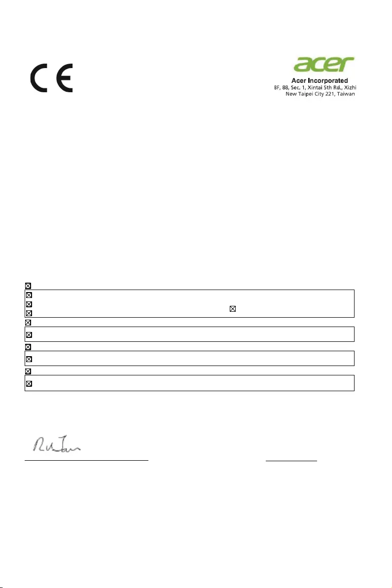 We, Acer Incorporated, hereby declare under our sole responsibility that the product described above is in