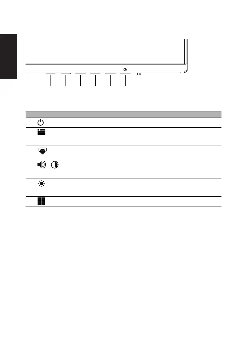 1 Power button/indicator Turns the monitor on/o. Blue indicates power on. Blinking blue indicates
