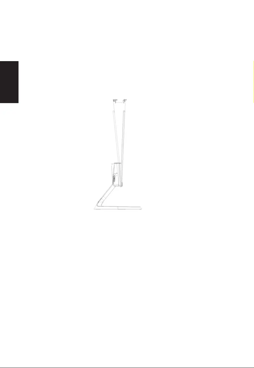 weergegeven. De monitor kan worden aangepast tot 15 graden omhoog of 5 graden