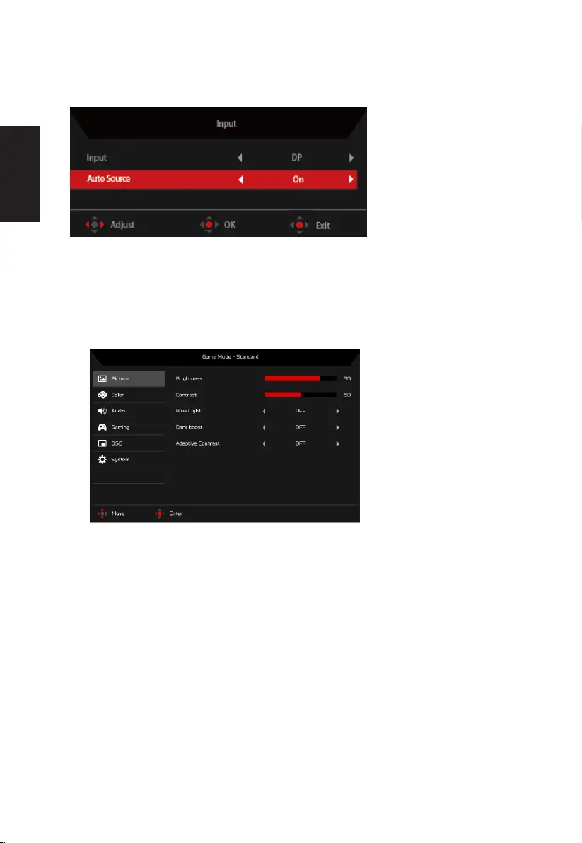 Open het ingangsbeheer en selecteer HDMI1(2.0), HDMI2(2.0), DP of Auto bron. Wanneer u