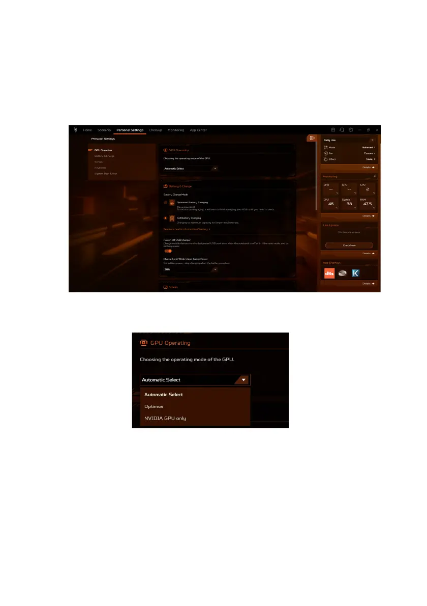 kunt u naar wens de GPU-bedrijfsmodus, de oplaadmodus van de