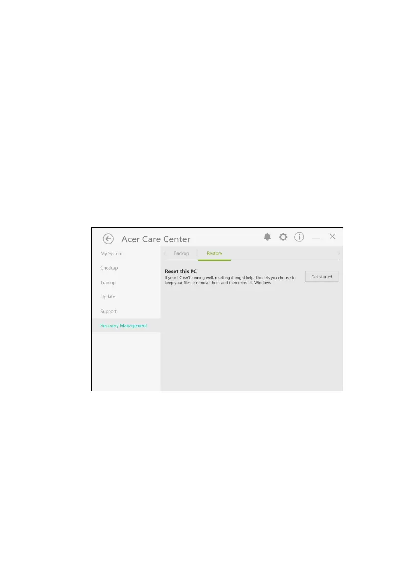 (Aan de slag) om het venster [Recovery] (Herstel) te openen.