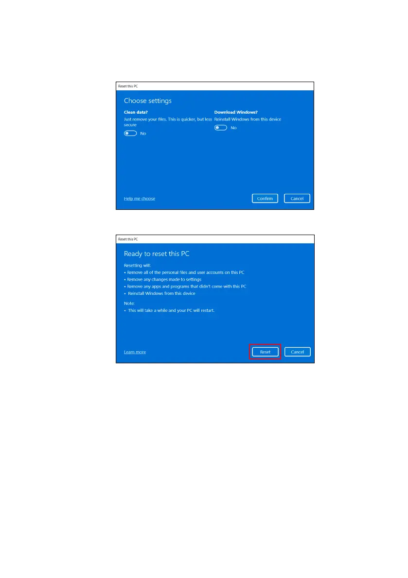 8.Klik op [Reset] (Resetten) om verder te gaan.