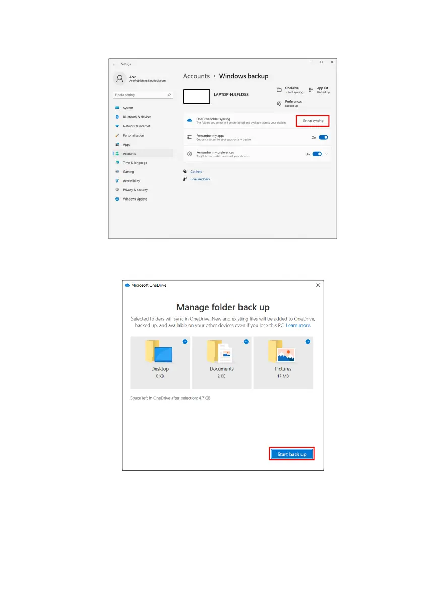 3. Click Set up syncing for OneDrive folder syncing to continue.