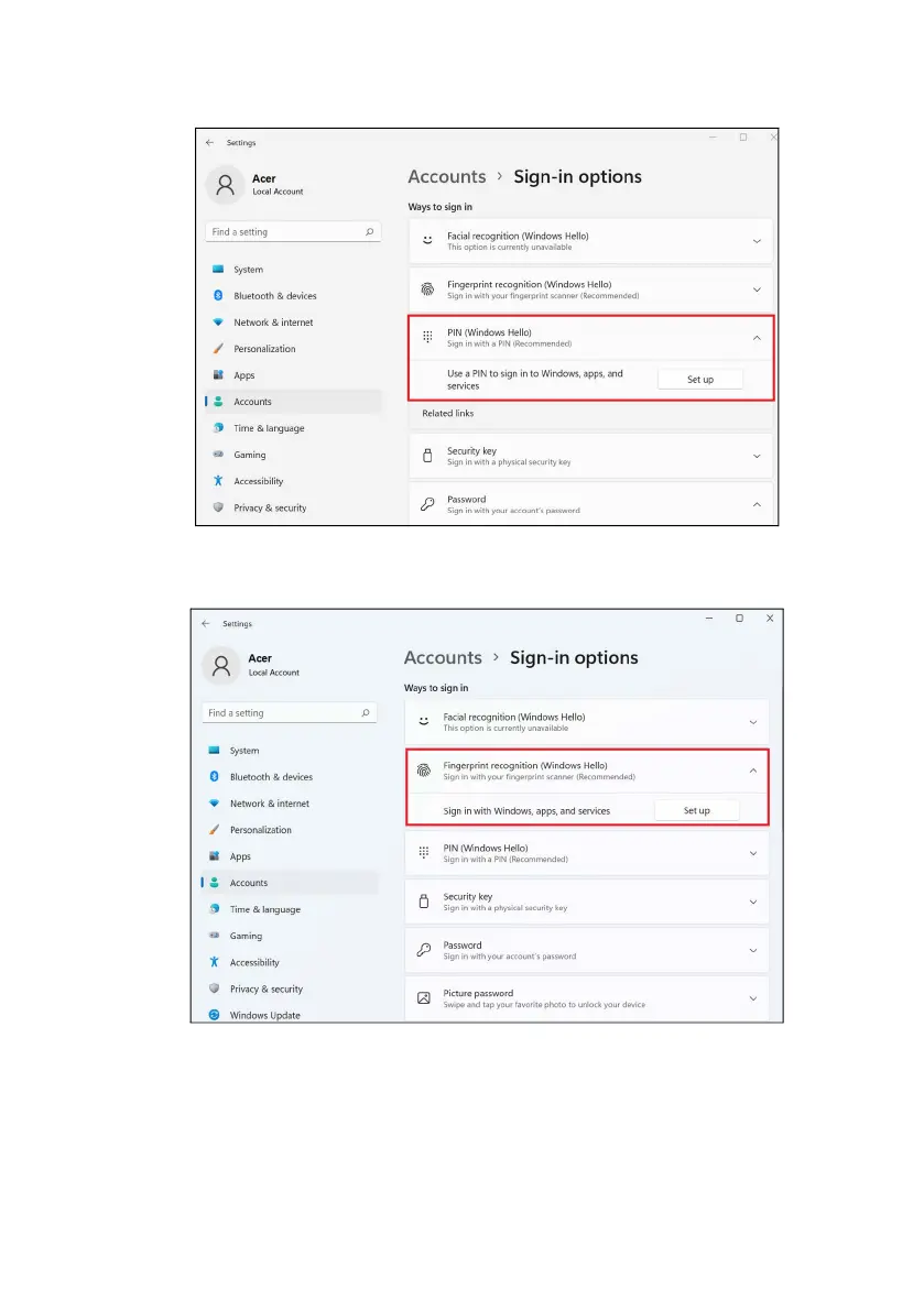 3. In Windows Hello Fingerprint, select Set up to configure the