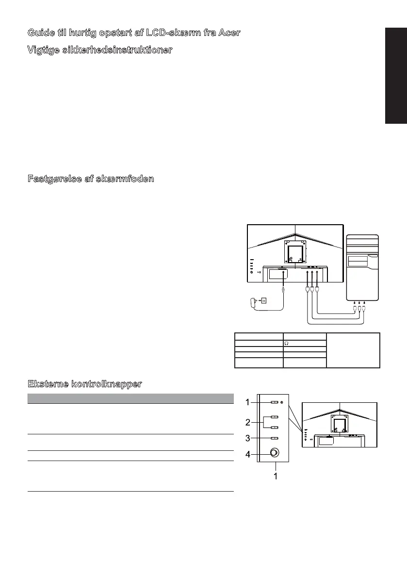 Guide til hurtig opstart af LCD-skærm fra Acer