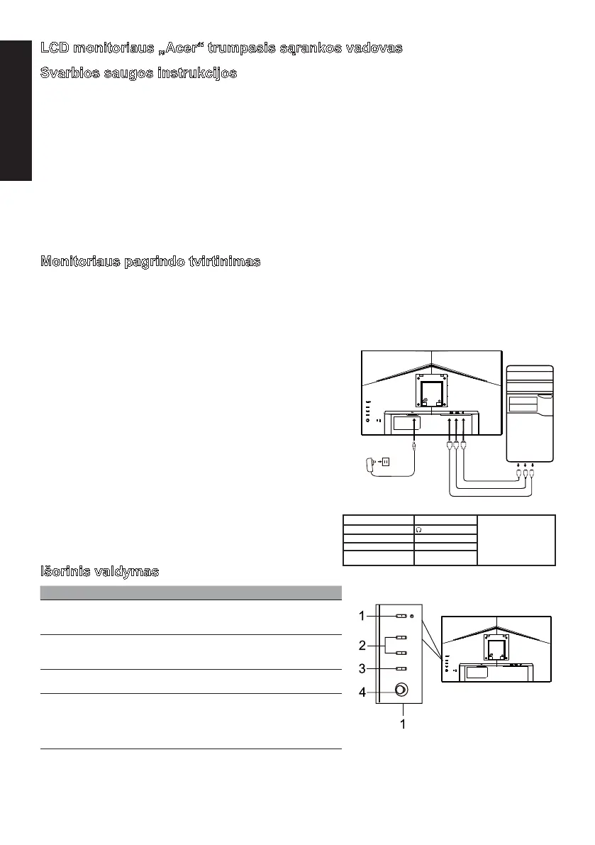 LCD monitoriaus „Acer“ trumpasis sąrankos vadovas