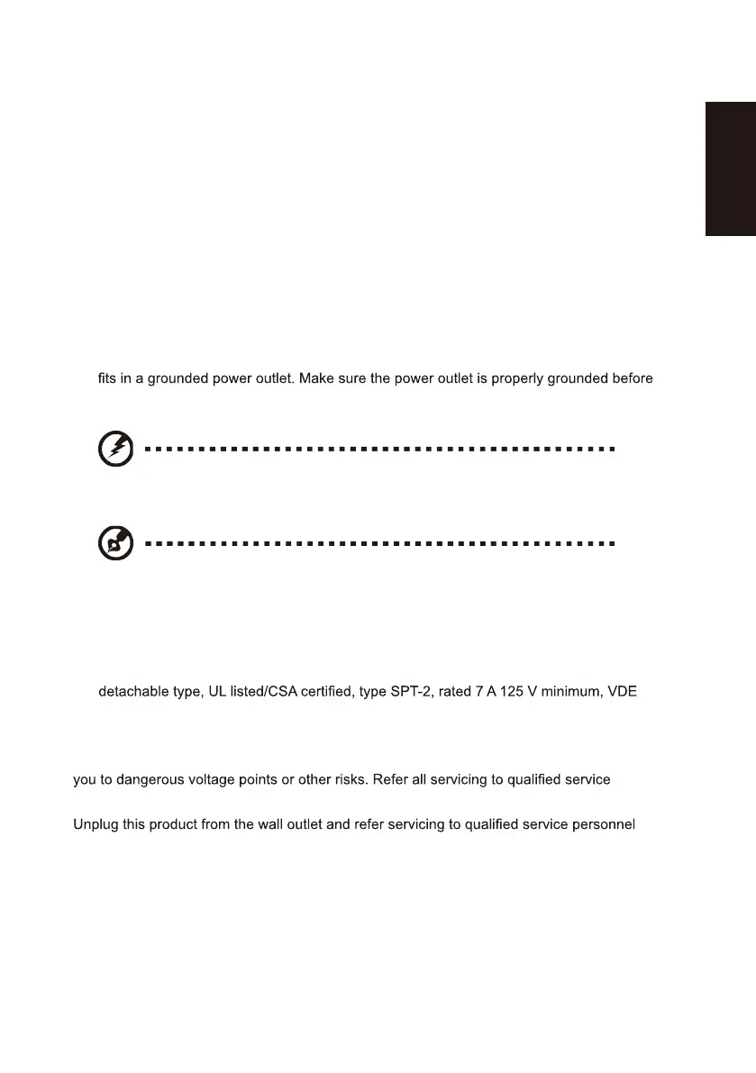 • This product’s power cord is equipped with a three-wire grounded plug. The plug only