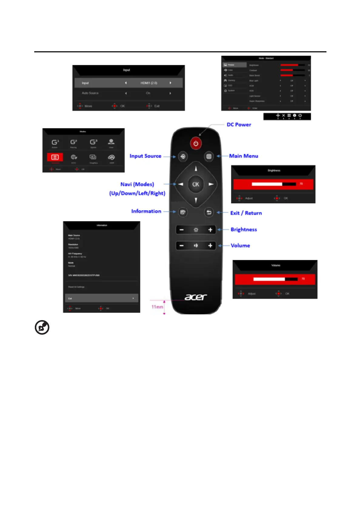 Note: (Saving Mode, Input Not Supported and Cable Not Connected) status press