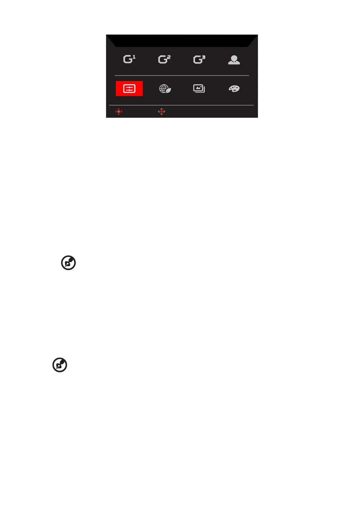 2. Users can adjustment (Brightness (SDR), Aim Point, Over Drive, Refresh Rate Num