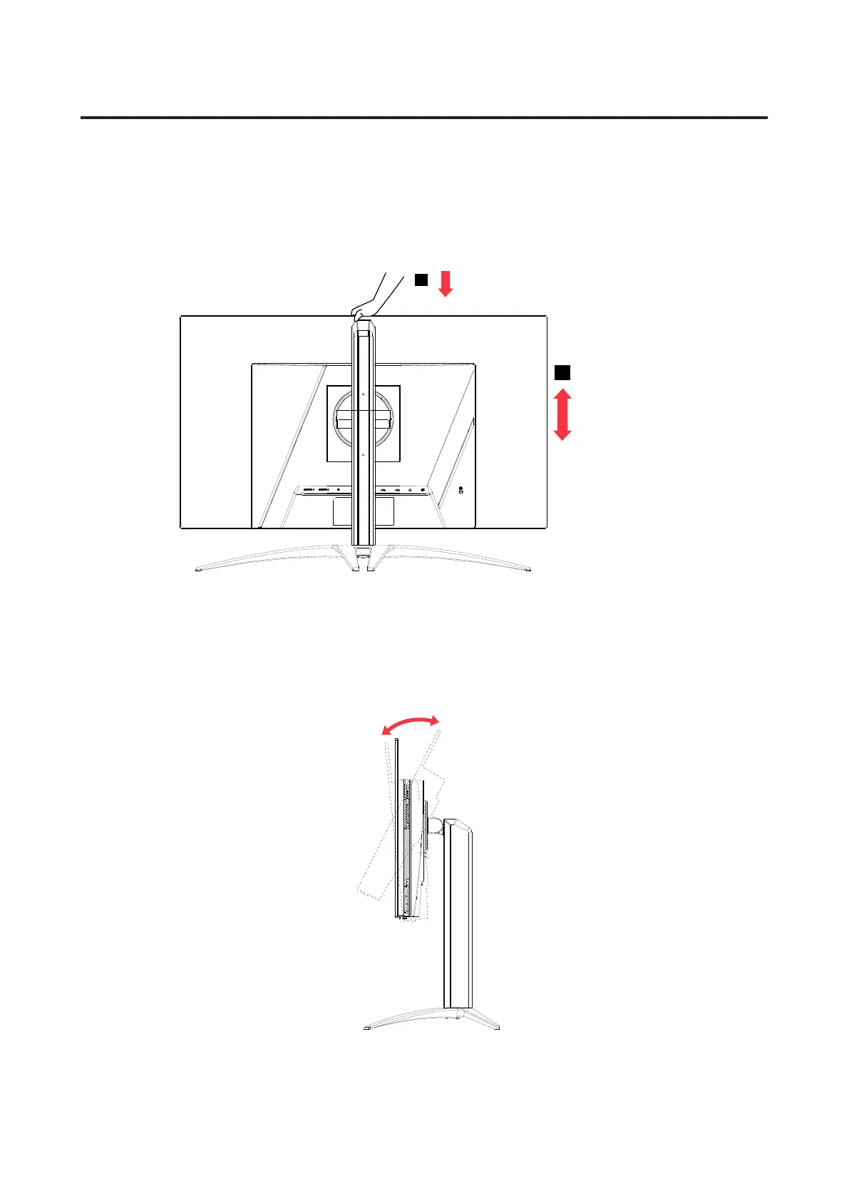 Nadat u op de bovenkant van de monitor hebt gedrukt, kunt u de hoogte van de monitor