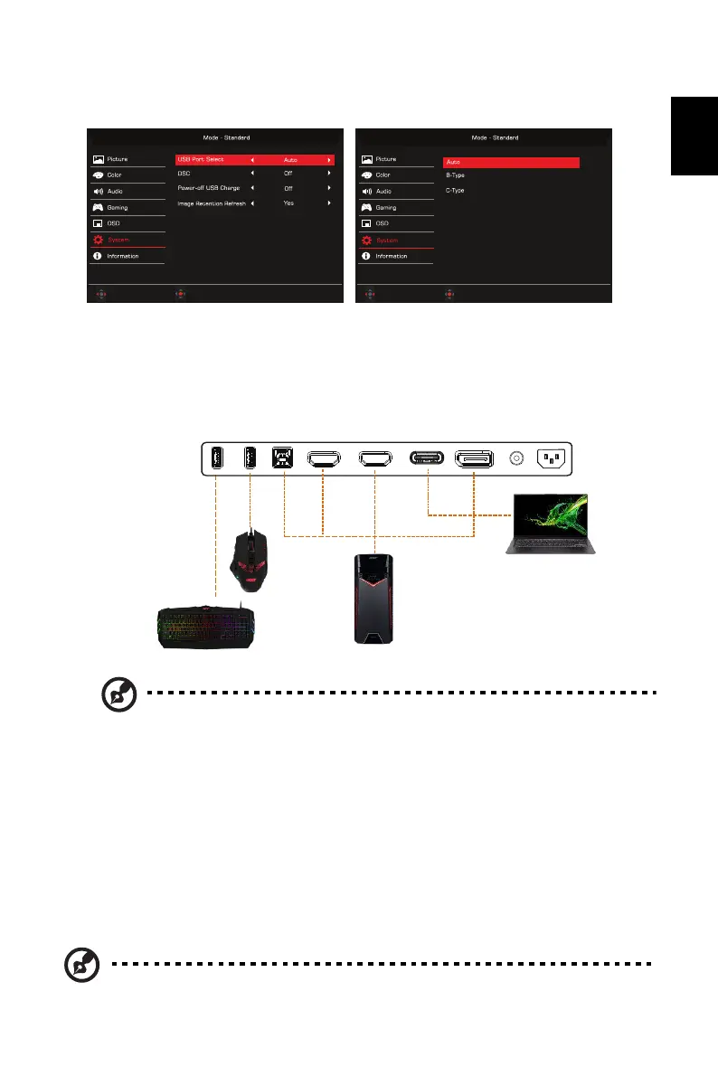 • Kies Type-C/USB-B bij USB-poort selecteren in de OSD