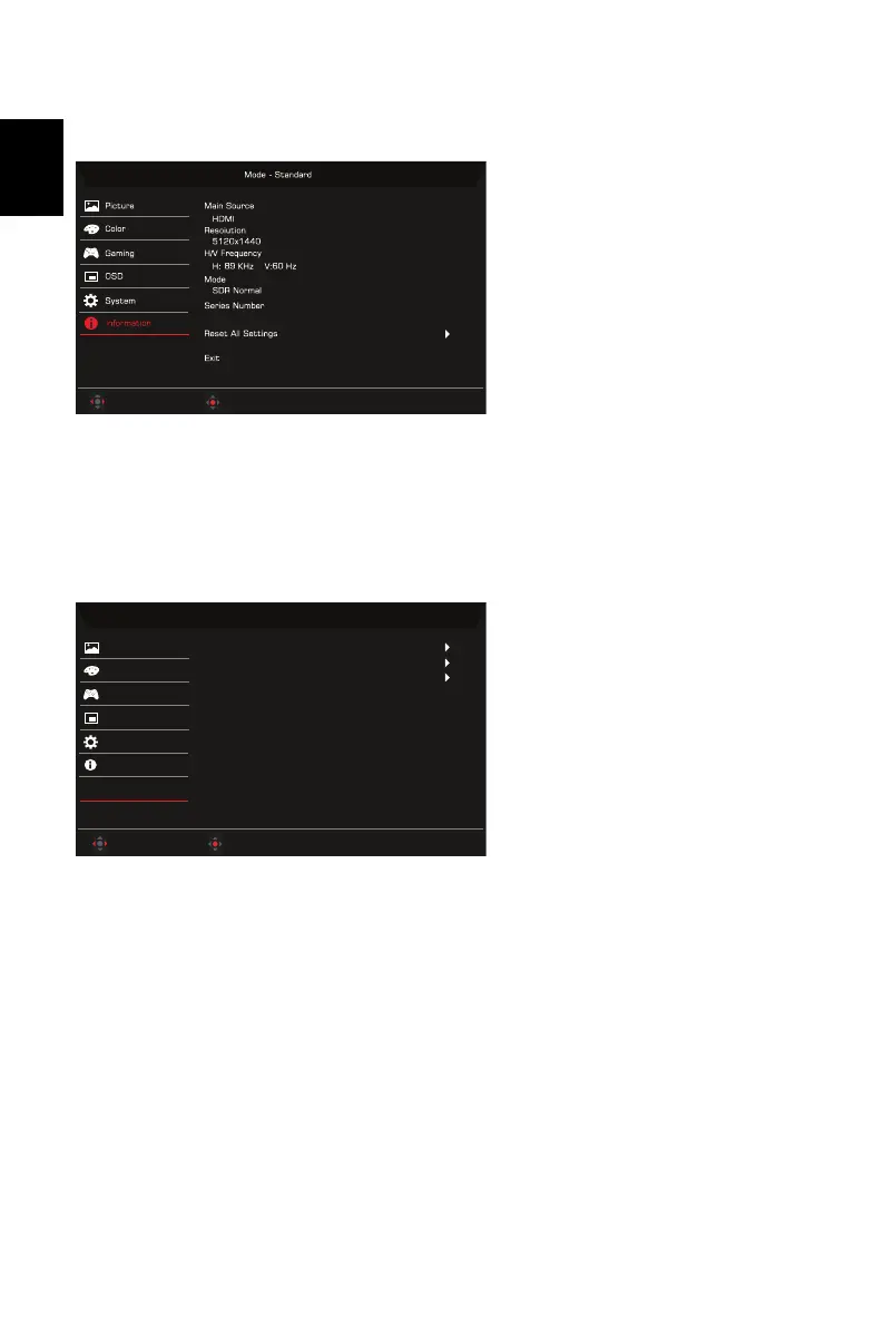 2. Selecteer Informatie met de toetsen om basale informatie over het beeldscherm