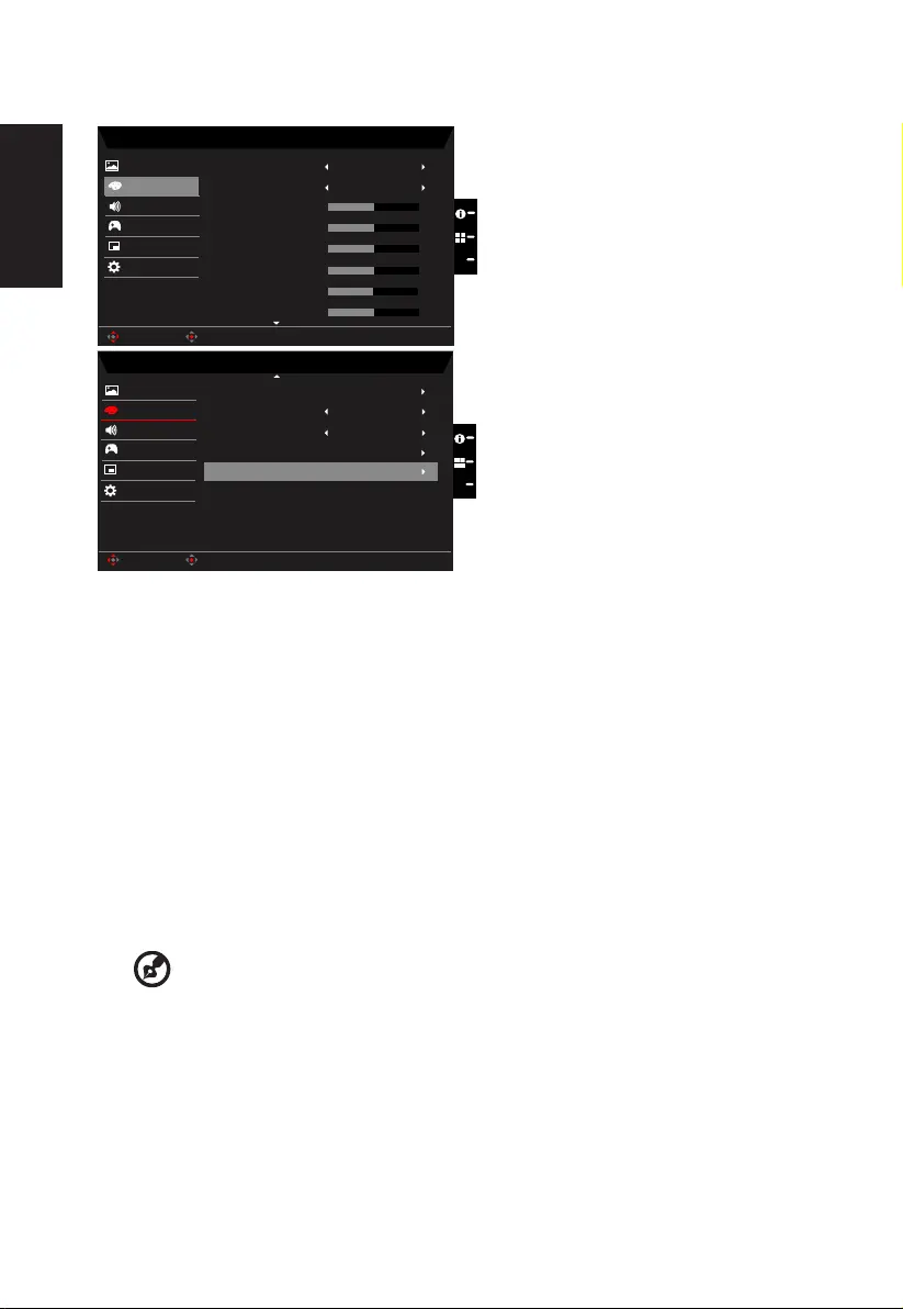 2. Beweeg de joystick omhoog of omlaag om Color (Kleur) in het OSD te selecteren. Ga