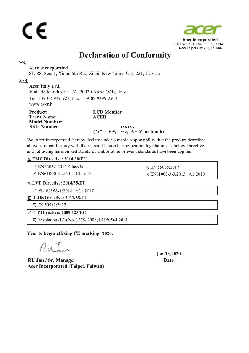 Bekijk gratis de handleiding van Acer QG241YP, stel vragen en lees de antwoorden op veelvoorkomende problemen, of gebruik onze assistent om sneller informatie in de handleiding te vinden of uitleg te krijgen over specifieke functies.