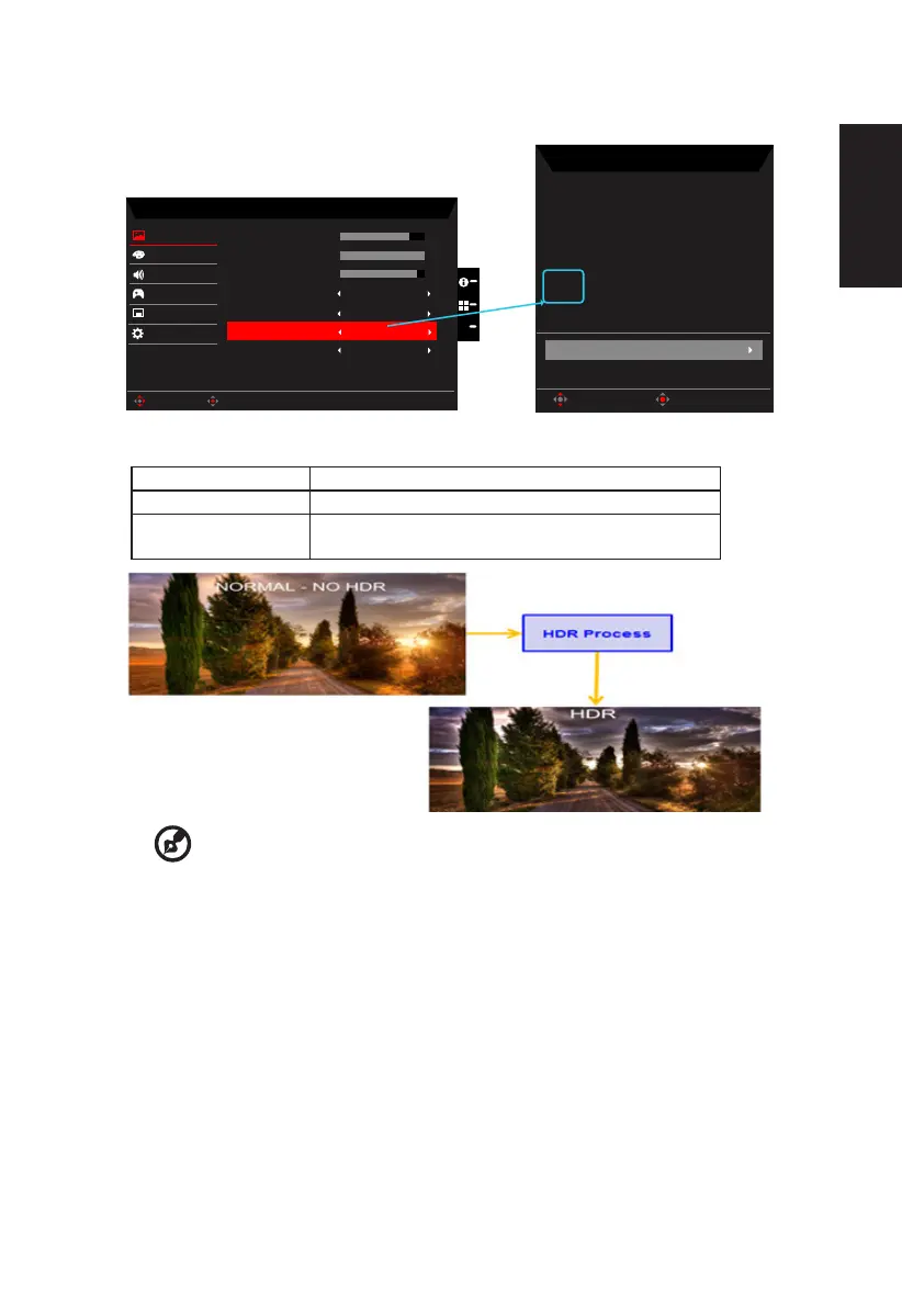 2. HDR = (Auto ( 自動 ) )、機 能 : (ACM/Gamma ( ガンマ )/Contrast ( コントラスト )/