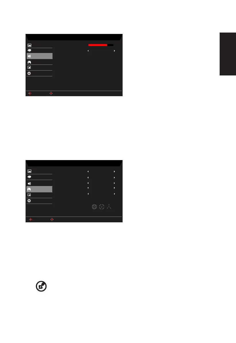2. ジョイスティックを上または下に切り替えて、OSD から Audio ( オーディオ ) を選 択します。