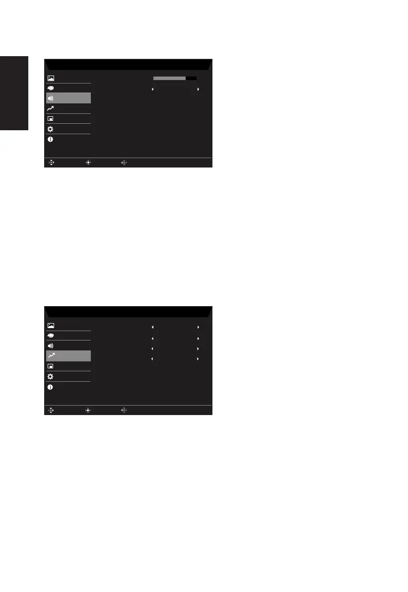 2. Beweeg de joystick omhoog of omlaag om Audio in het OSD te selecteren. Ga