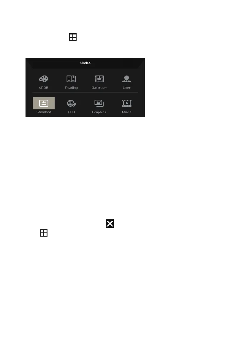 機能ページから、 を押して Modes(モード)制御に進み、使用するユーザー