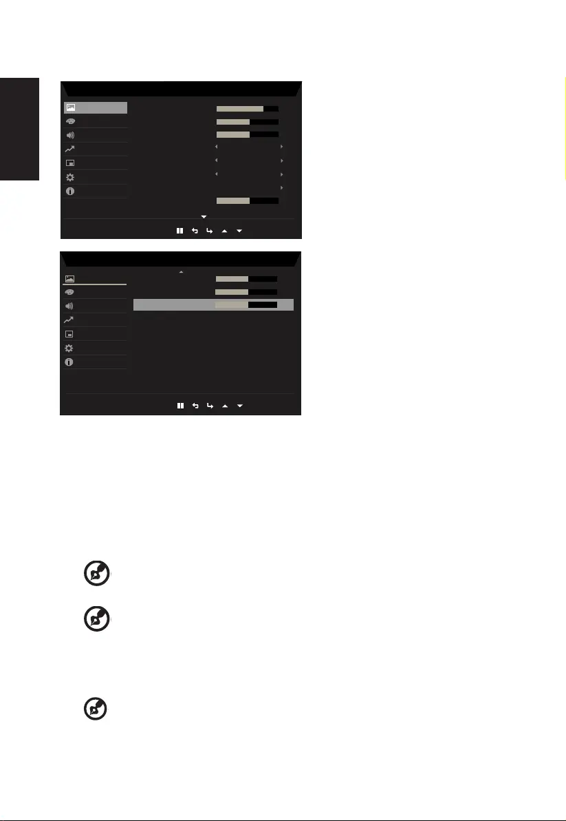 (Helderheid), Contrast, Black Boost (Zwartversterking), Blue Light (Blauw licht), ACM,