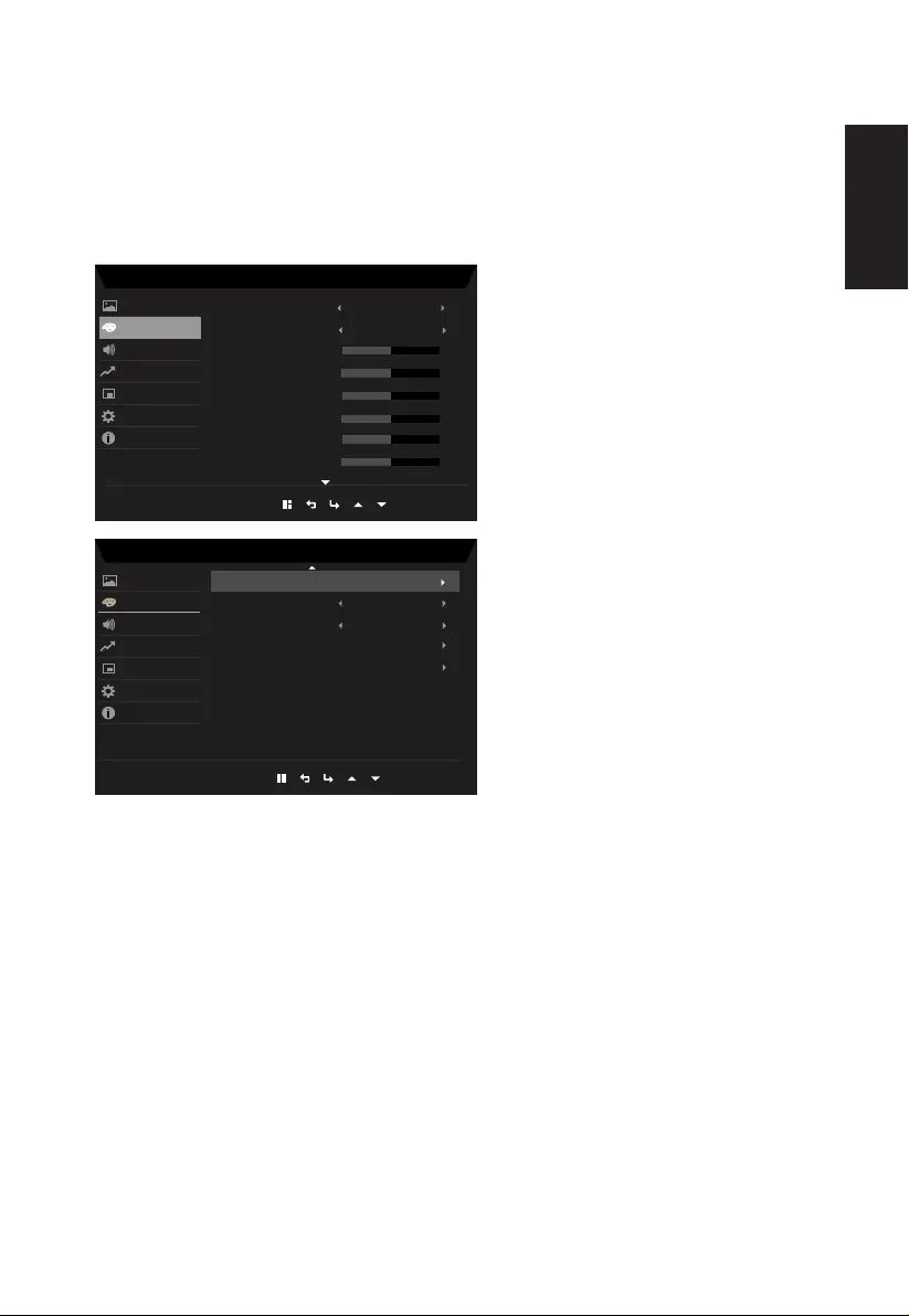 2. Druk op de toets omhoog of omlaag om Kleur te selecteren in het OSD. Druk
