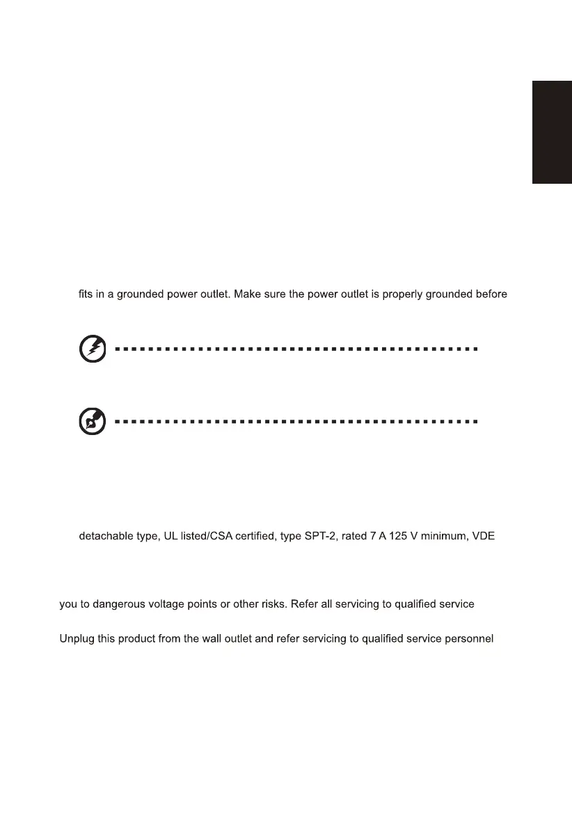 inserting the power cord plug. Do not insert the plug into a non-grounded power outlet.