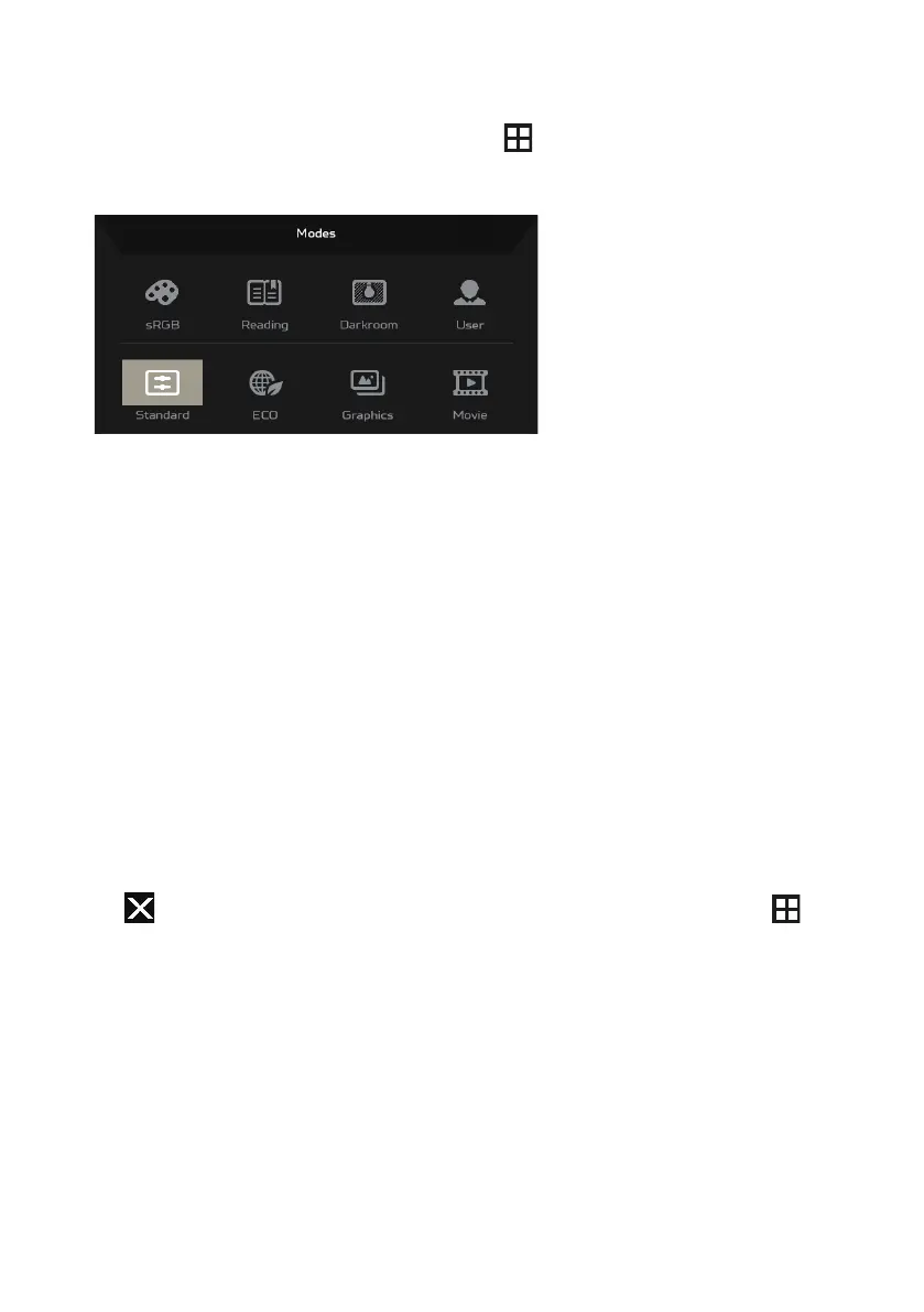 Druk op een willekeurige functiepagina op om het modusbeheer (Modes)