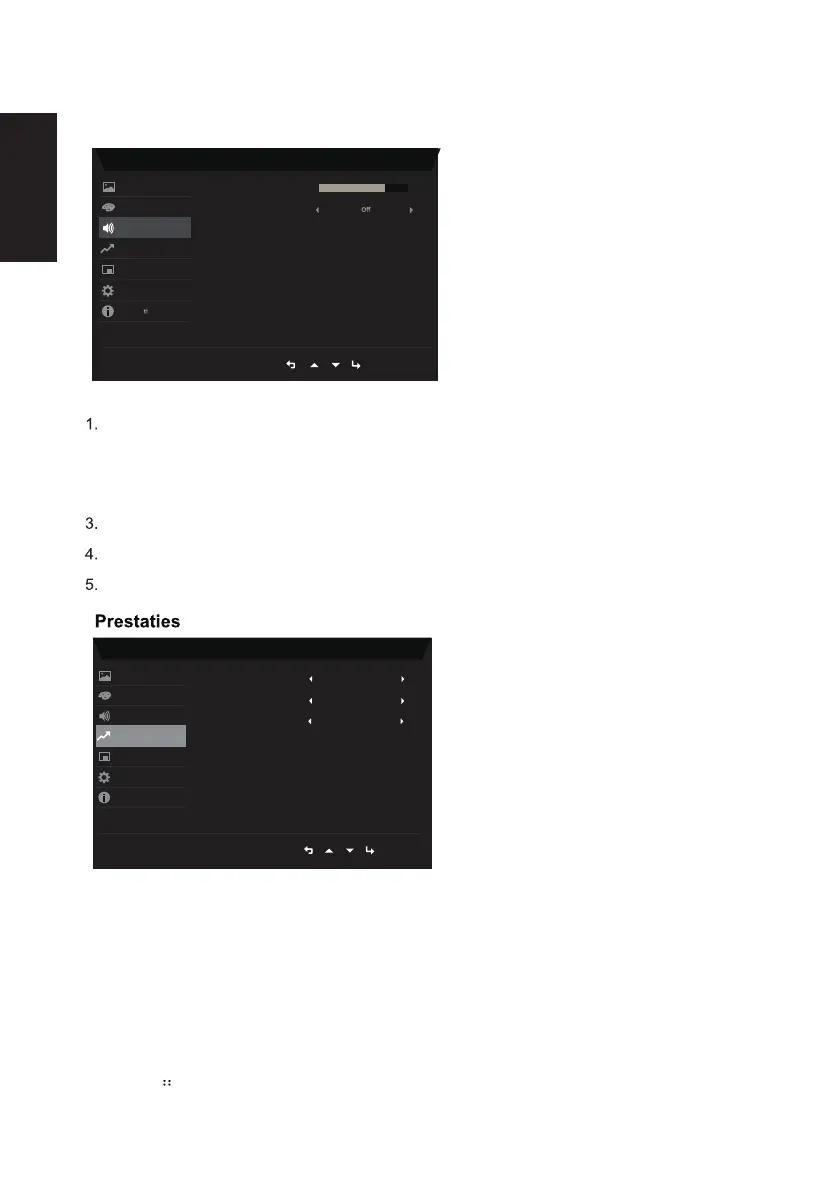 2. Druk op de omhoog of omlaag knop om Prestaties te selecteren in het OSD. Druk