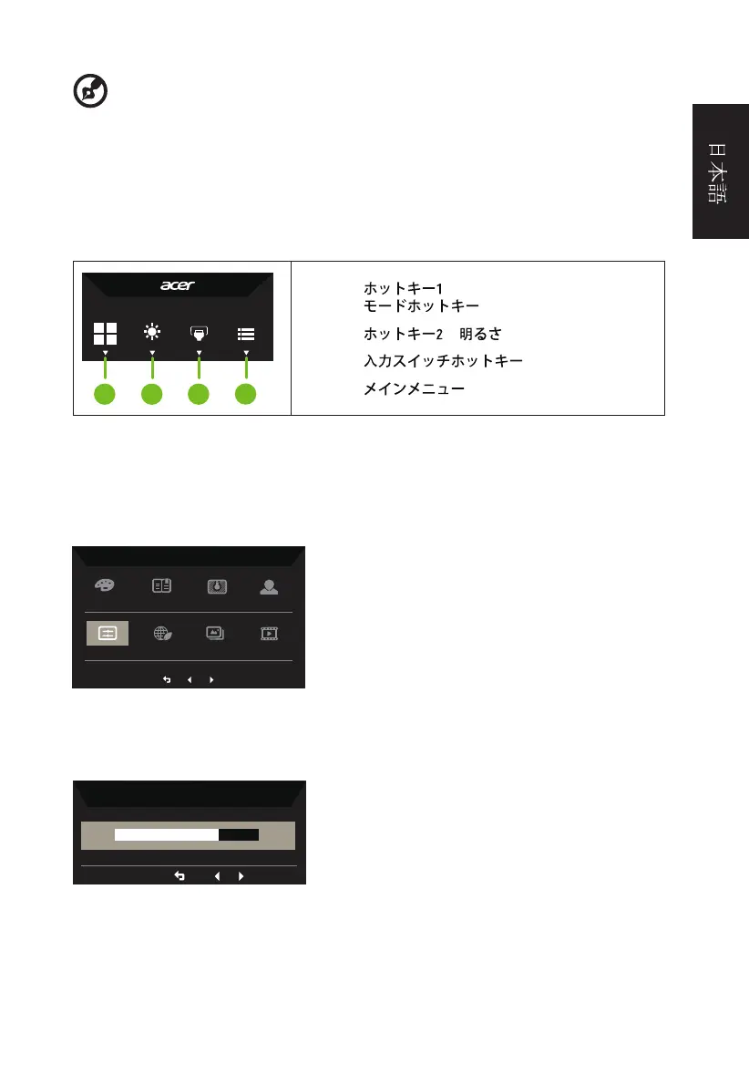 を調整するために OSD を使用することができます。詳細設定については、次ページをご参照くだ