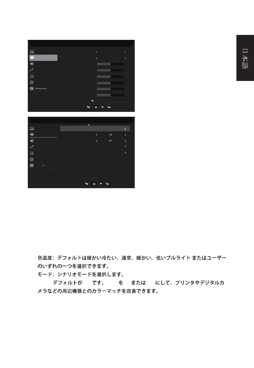2. ジョイスティックを上または下に切り替えて、OSD から Color ( カラー ) を選択します。次に、