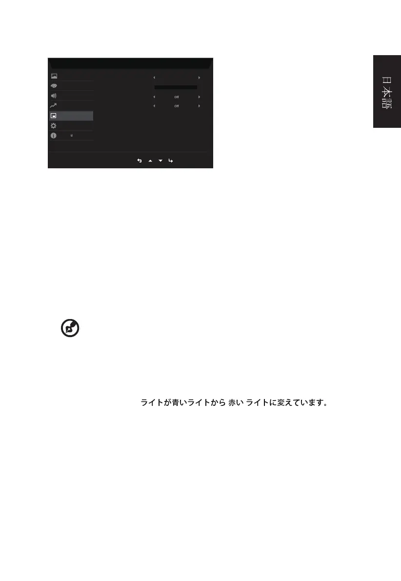 5. OSD timeout(OSD タイムアウト): OSD メニューがオフになるまでの遅延時間を調整しま