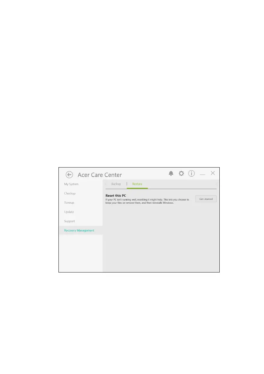 2. Kies het tabblad [Restore] (Herstellen) en klik op [Get started] (Aan