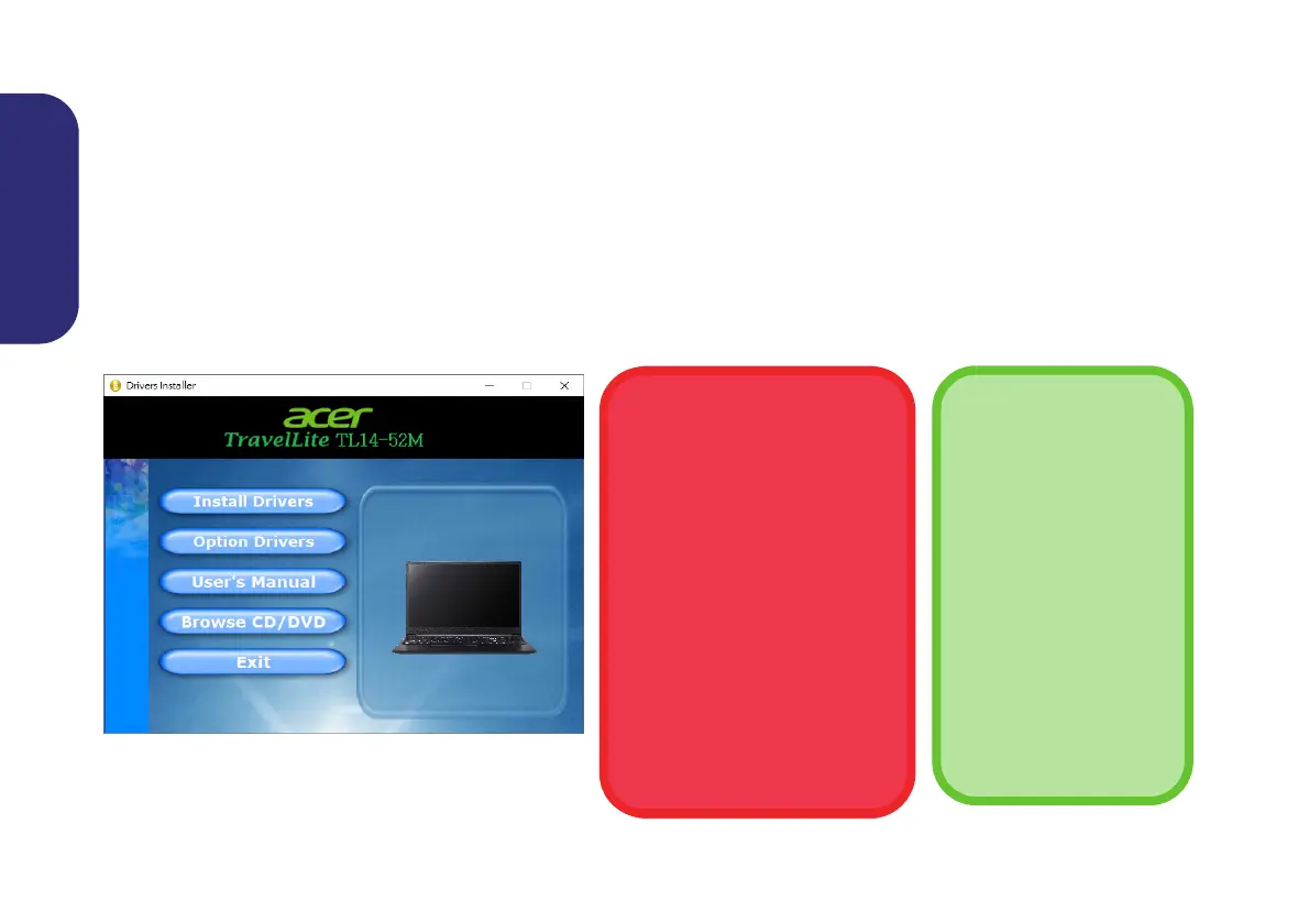 Install Drivers (button), or Option Drivers (button) to access the Optional driver menu. Install the drivers in the or-