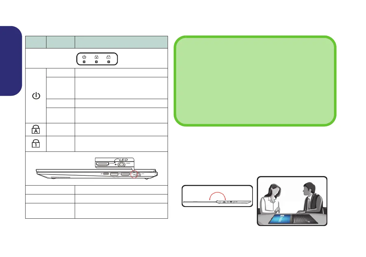 The LED indicators on the computer display helpful information about the current status of the computer.
